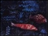 Description: a platter of food and fruits, with a notebook, on a blanket